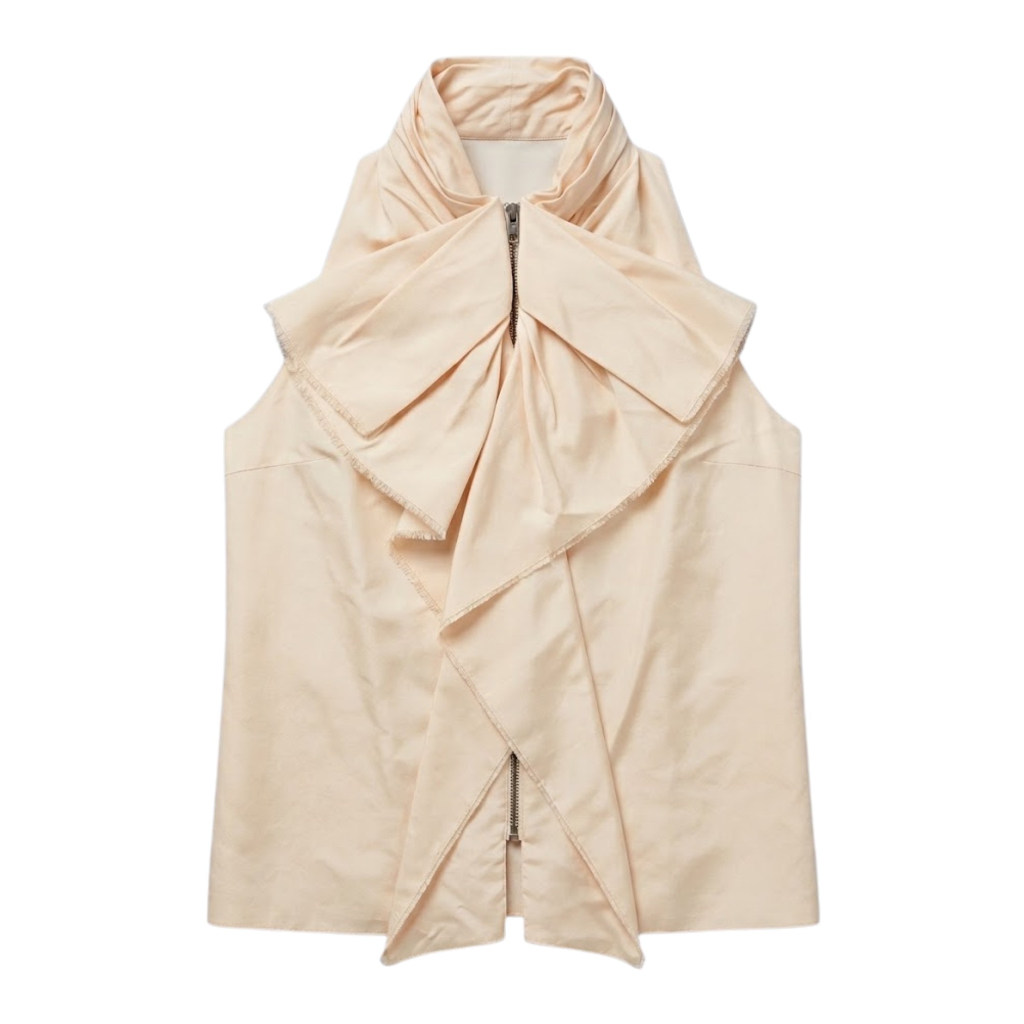 • Lanvin Fall 2007 • Silk top • Sleeveless • Ruffle bib • Exposed zip • Made in France