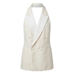 From Stella McCartney’s Spring 2011 collection, this white silk double-breasted waistcoat reimagines classic tailoring with the designer’s signature sense of ease. Crafted from thick silk, the piece features a sharply tailored front with peak lapels and traditional button fastening, but turns to reveal an entirely naked back, anchored only by a slim waistcoat strap.